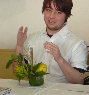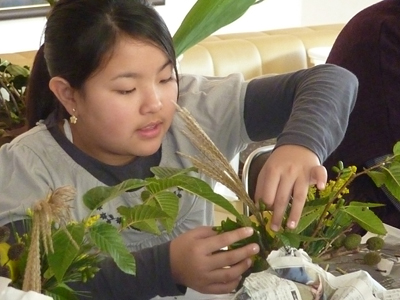 一人ひとりに、花材が配られ、思い思いに、その人の感性で、生けていきました。