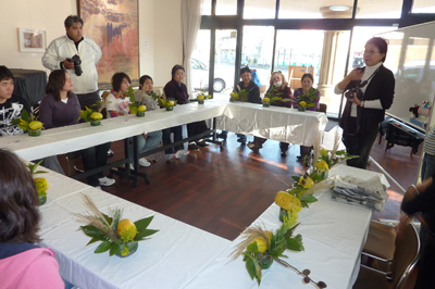「生花は決まりごとがたくさんありますが、今回は初めての人たちなので、決まり事にこだわらず、楽しく生けて、それで、形がとれるように」と心がけたそうです。