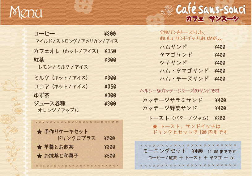 カフェのメニュー