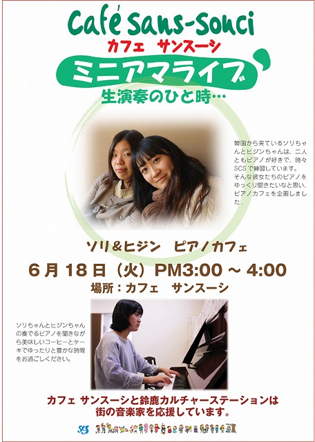 おおぜいのお客さんもコーヒーを飲みながら、ソリちゃんとヒジンちゃんの奏でるメロディにゆったりと身をまかせて心地よさそうでした。