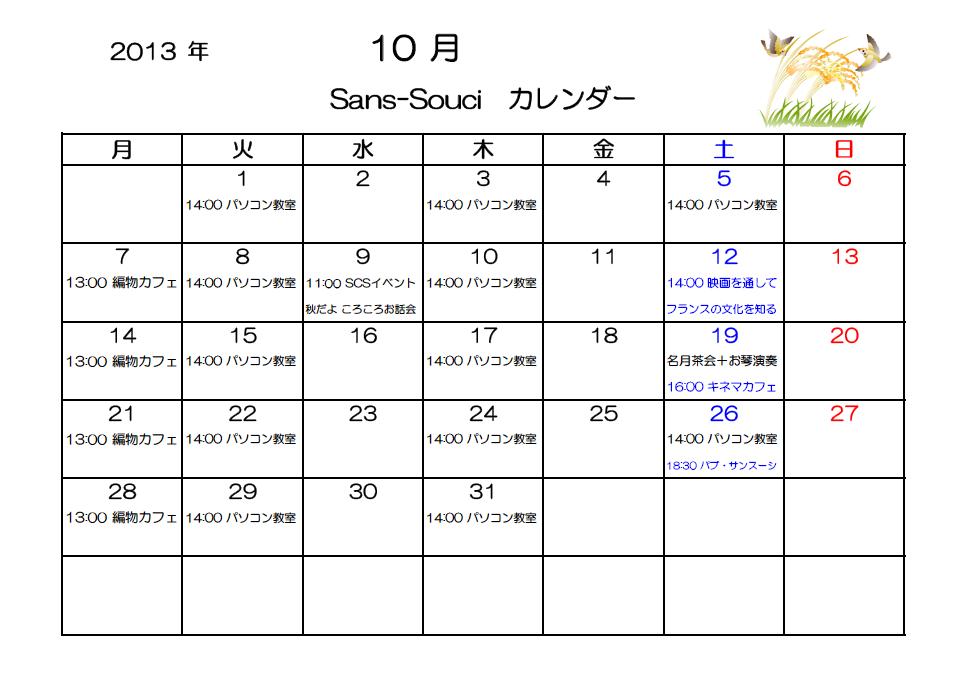 11月のサンスーシの予定をお知らせします。